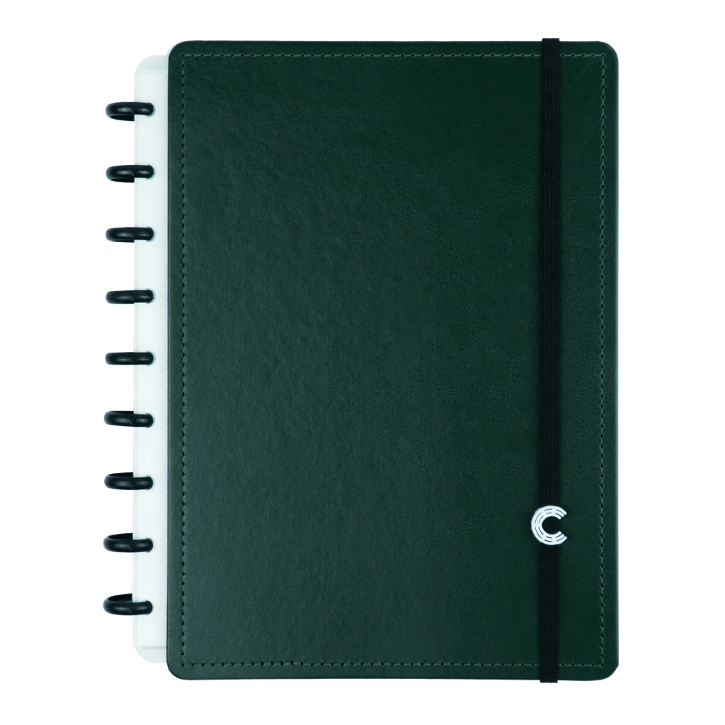 Disponível nos tamanhos A5, médio e grande, o Dark Green se adapta às suas necessidades, seja para anotações rápidas, estudos, trabalho, ou planejamento criativo.
