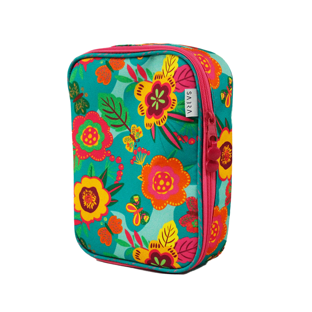 Confeccionado em tecido poliéster dublado estampado, o Box 100 Pens é durável e moderno. A estampa Jardim Encantado, com suas cores suaves e detalhes florais, foi criada para trazer tranquilidade e inspiração.