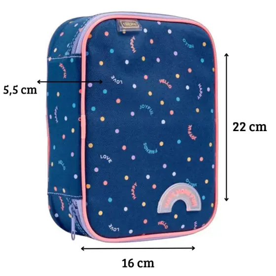 Ficha Técnica: Material: Nylon resistente Compartimentos: Um compartimento principal espaçoso Divisória Central: Possui divisória central com elásticos para acomodar lápis e canetas Fechamento: Zíper para maior segurança Forro Interno: Sim Dimensões: Largura: 150 mm; Altura: 210 mm; Profundidade: 60 mm