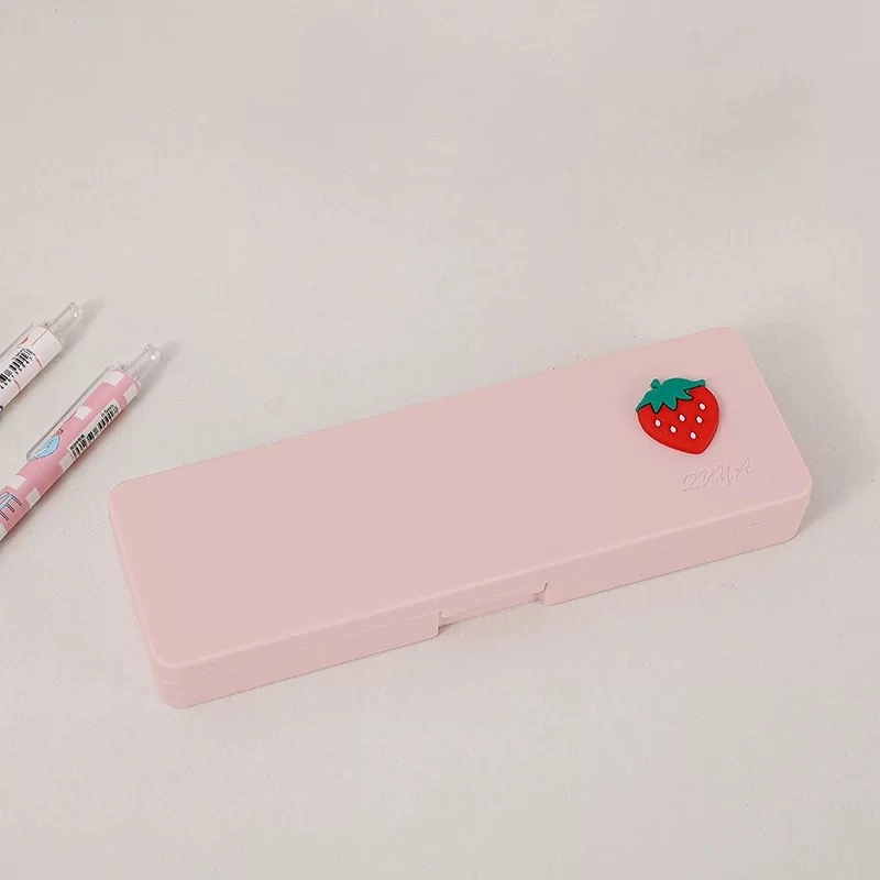 Delicado e funcional, este estojo rígido é perfeito para manter seus materiais escolares organizados e protegidos! Com um design minimalista e um charmoso detalhe de morango na tampa, é ideal para estudantes e amantes de papelaria.