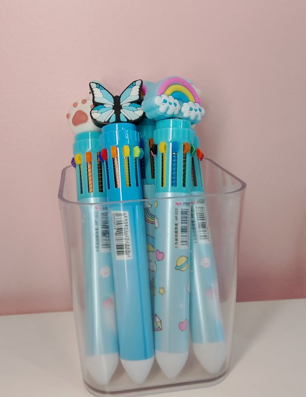 Caneta com 10 Pontas super fininhas e com escrita super gostosa. Para desacionar a ponta, basta apertar na decoração em cima da caneta. São 10 Cores lindas para sua escrita ficar incrível.