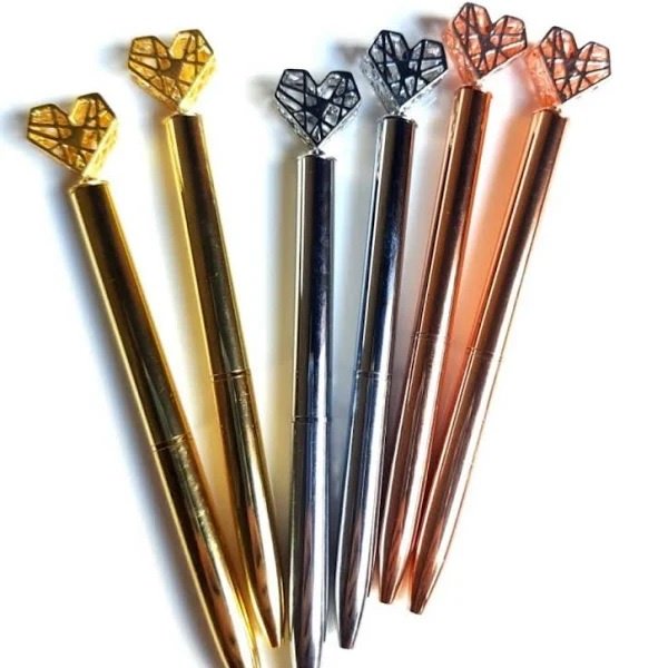 Uma caneta elegante feita de metal, com um design sofisticado e moderno. Seu destaque é o coração vazado na parte superior, que adiciona um toque romântico e delicado ao visual. A ponta 1.0 proporciona uma escrita fluida e precisa, enquanto a tinta azul garante um traço intenso e duradouro. Ideal para quem aprecia estilo e qualidade em cada detalhe.
