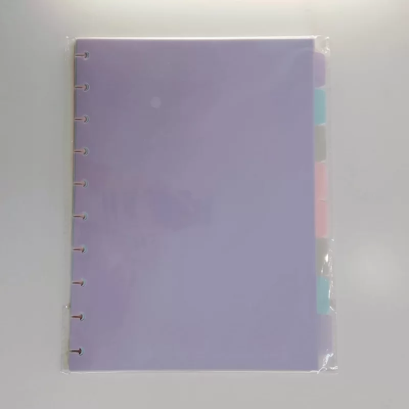 Organize seus cadernos e fichários com estilo e praticidade! Este kit contém 10 divisórias em tamanho universitário (A4), perfeitas para separar matérias, categorias ou projetos. Produzidas em material plástico resistente, as divisórias possuem furos no padrão de discos (discbound), sendo compatíveis com cadernos inteligentes.