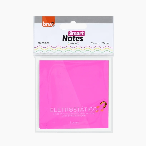 Bloco de notas eletrostático sem cola gruda em qualquer superfície lisa! Simplifique sua organização e dê mais praticidade ao seu dia a dia com o Bloco Smart Notes Eletrostático BRW. Com 30 folhas neon, este bloco oferece uma maneira única de colar suas anotações em qualquer superfície sem o uso de adesivos. A tecnologia eletrostática permite que as folhas grudem e descolem facilmente, tornando o processo mais ágil e sem deixar resíduos. - Dimensão de 76x76mm: Tamanho compacto e ideal para lembretes, anotações rápidas ou pequenos recados. - Tecnologia Eletrostática: As folhas aderem a superfícies lisas como vidro, metal, plástico e madeira, sem a necessidade de cola ou fita adesiva.