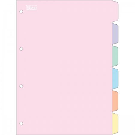 As Divisórias para Caderno Argolado Universitário da Tilibra são a escolha certa para manter a organização das matérias escolares. O produto vem em pacote com 6 divisórias para você separar suas anotações de forma eficiente. Cada divisória possui uma impressão exclusiva nas cores rosa, lilás, verde, azul, laranja e amarelo, adicionando um toque de estilo e diferenciação ao seu material escolar. Adquira já as suas Divisórias Pastel para Caderno Argolado Universitário e torne sua organização muito mais prática!