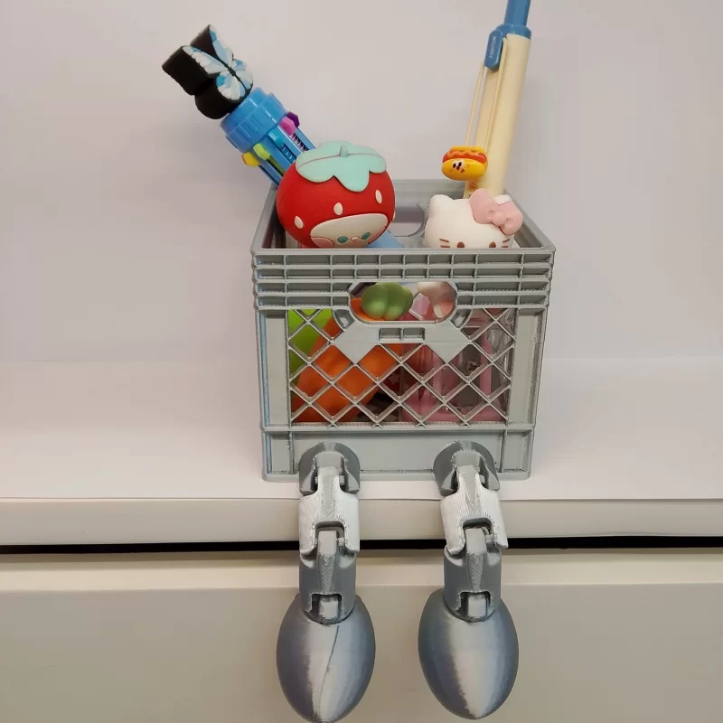 Adicione um toque de personalidade e humor à sua mesa com esse porta-lápis exclusivo, impresso em 3D! Com design de caixote retrô e perninhas articuladas que parecem estar sentadas na beirada da mesa, esse organizador é ideal para guardar lápis, canetas e outros itens de papelaria com muito estilo.
