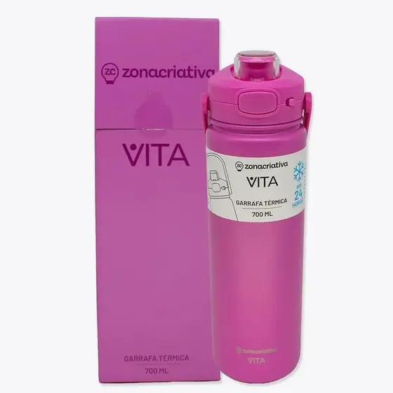 Vive um dia a dia corrido entre trabalho e precisa de uma garrafa que te acompanhe em todos os momentos? A gente te ajuda! Com 700ml de capacidade, parede dupla em aço inoxidável, mantém a temperatura da sua bebida por muito tempo! Não importa onde é o rolê, a Vita vai com você! A Vita Zonacriativa é a escolha certa para quem busca um estilo de vida, tem tudo o que você sempre buscou em uma garrafa! Vai passar o dia inteiro longe de casa? A gente te ajuda! Com uma parede dupla de aço inoxidável, separadas por vácuo, pare evitar troca de temperatura com o exterior, mantém sua bebida gelada por 24h e quente por 12h! Muita sede? Abra, beba, vita e repita! São 700ml de capacidade que te acompanham no escritório, academia e faculdade! E não precisa se preocupar com vazamentos durante a maratona do dia a dia, com tampa rosqueável e uma trava eficiente, você pode andar de cabeça para baixo que não vaza nada! Além de contar com uma alça em silicone que facilita carregar sua Vita durante seus passeios!