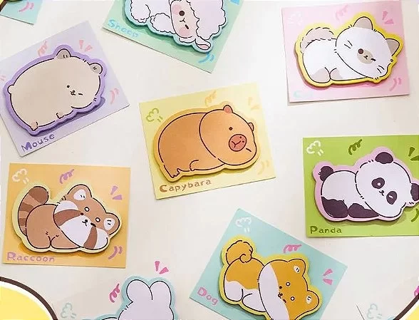 Transforme suas anotações em uma mini floresta de fofura com esses post-its ilustrados com os bichinhos mais carismáticos do reino animal! Guaxinins curiosos, cachorros sapecas, pandas sonolentos e outros companheiros peludos espiam pelas bordas das folhas como se dissessem: "Ei, não esquece dessa tarefa!"