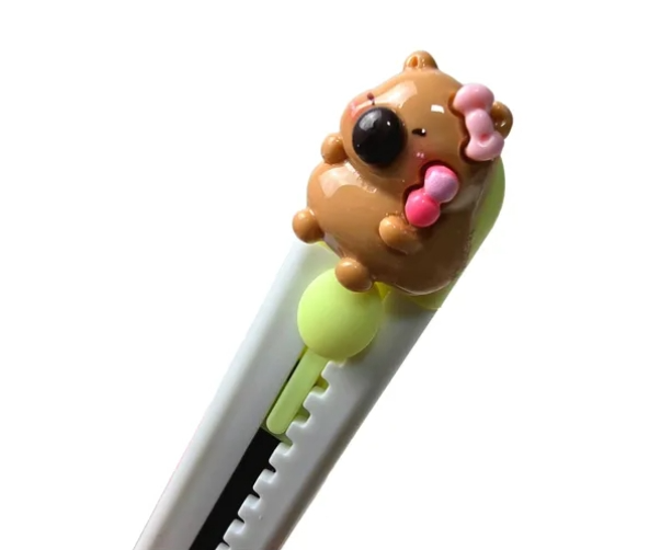 Apresentamos o Mini estilete escolar Capivara, uma ferramenta essencial para estudantes e amantes de papelaria. Com um design encantador em verde-claro, este estilete combina funcionalidade e estilo, tornando-se um item indispensável na sua coleção de materiais escolares.