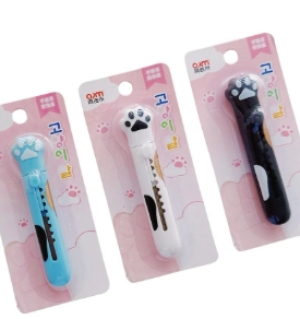 Um estilete em formato de patinha, na cor branca, é um item de papelaria criativo e delicado, ideal para quem gosta de acessórios fofos e funcionais. Seu design imita uma patinha de animal, com detalhes suaves que lembram almofadinhas. Compacto e ergonômico, é perfeito para cortes precisos em papel e outros materiais leves, unindo praticidade ao charme de um visual divertido e único.
