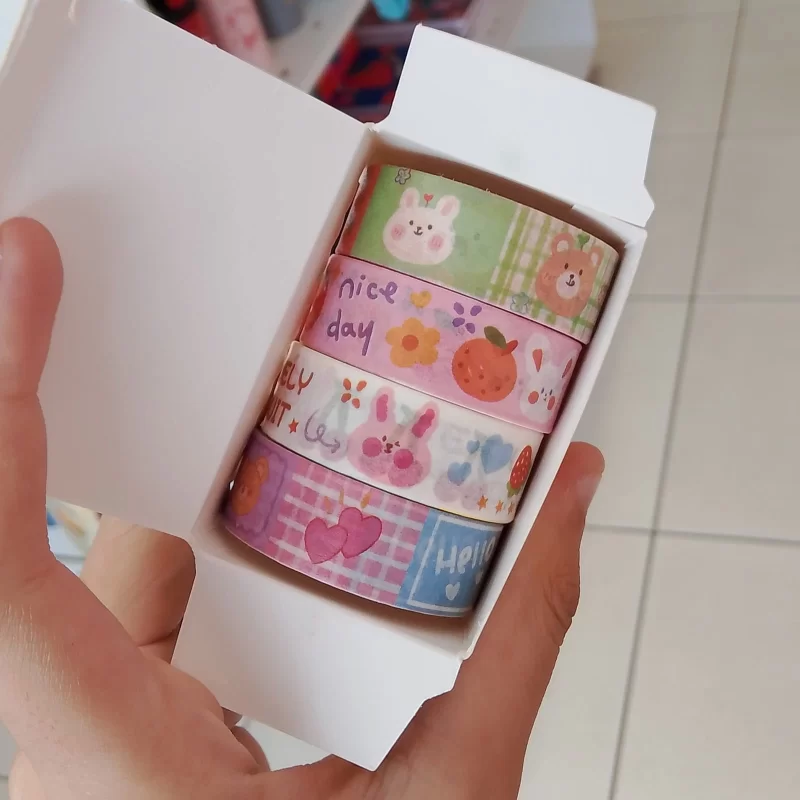 Esse kit com 4 washi tapes é puro charme! Ele traz ilustrações fofas, perfeitas para decorar planners, diários, cartões e muito mais. As cores suaves e os desenhos delicados deixam qualquer projeto mais alegre e acolhedor. Ideal para quem ama detalhes criativos e um toque de fofura na papelaria do dia a dia.