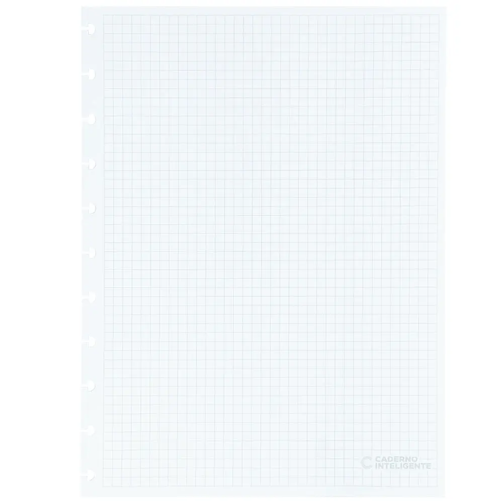 Se você não quiser usar apenas folhas brancas lisas no seu CI, você pode optar pelo refil para caderno inteligente de folhas quadriculadas, ideal para matérias de Exatas, para artistas ou simplesmente para quem prefere essa disposição.