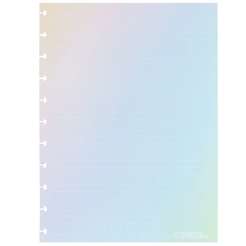Em um degradê de cores, o Refil Rainbow é a mistura da beleza das cores do arco-íris e os sentimentos bons que cada uma delas carregam em si, com a funcionalidade das linhas brancas que suportam suas anotações, lettering, desenhos ou rabiscos sem as distrações das linhas escuras convencionais.