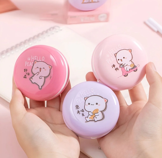 Adoce sua coleção de artigos de papelaria com a Fita Corretiva Macaron Chibi Cat - a maneira mais fofa de corrigir seus erros! Com a forma de um pequeno macaron com uma surpresa escondida dentro, basta deslizar o botão para revelar a fita corretiva e deslizar para longe quaisquer deslizes com facilidade. Cada cor apresenta uma adorável ilustração de gato chibi, tornando-a tão divertida quanto funcional!
