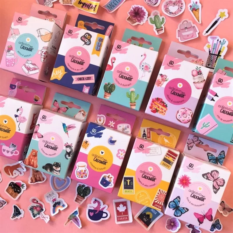Todo mundo adesivos, não é? Eles enfeitam cadernos, agendas, computadores, celulares…Eles colorem tudo por onde passam e deixam o dia mais divertido! Nessa caixinha você encontrará uma variedade de adesivos para enfeitar seus cadernos e acessórios.