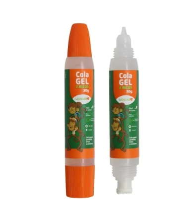 Cola Gel 2 Bicos Caixa com 30g cada Leo e Leo . Cola Gel com 2 tamanhos de bicos, um menor para detalhes e outro maior, facilitam na hora de criar colagens de diversos materiais, como papel, cartolina, fotos e similares.