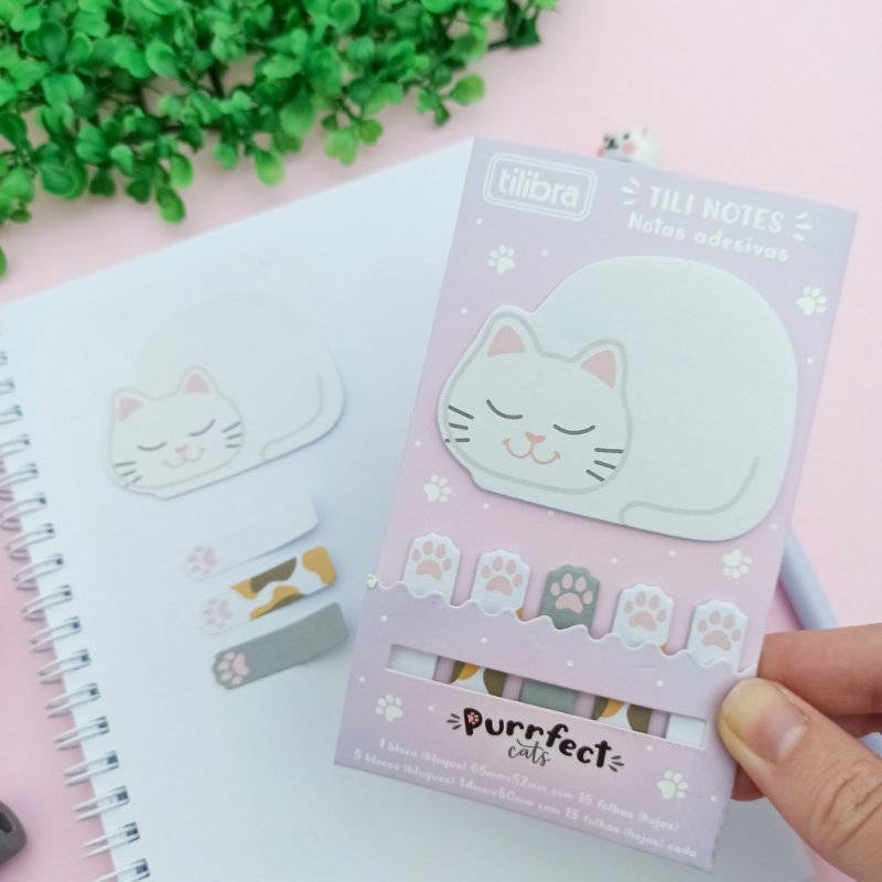 1 bloco no tamanho 65mm x 52mm, formato de gato, com 15 folhas