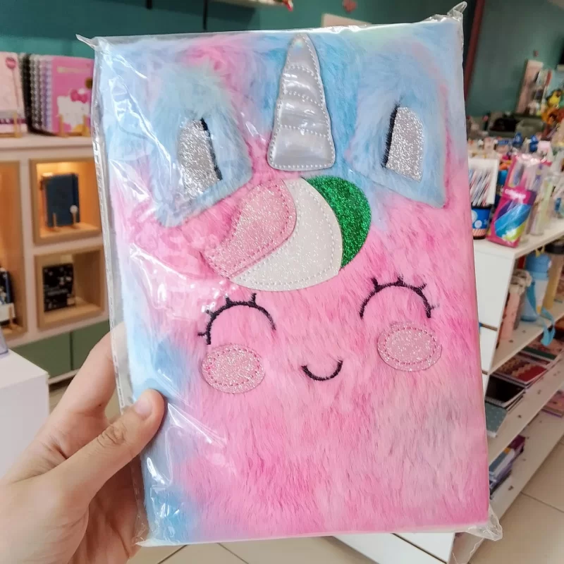 Caderno A5 Capa Pelúcia Unicórnio Avaliar